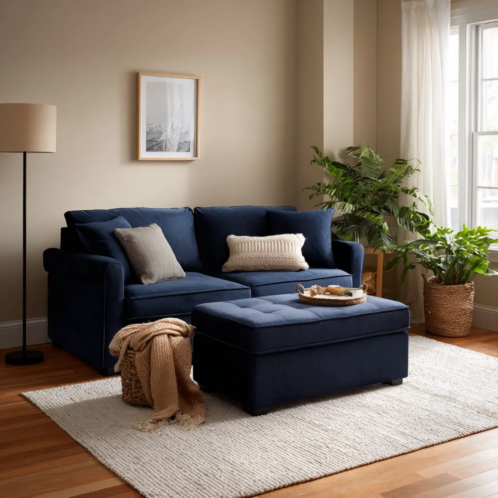 Sofa-Set mit Stoffbezug in Dunkelblau.